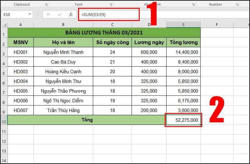 Ví dụ: Các bạn hãy tính tổng lương của nhân viên trong tháng.