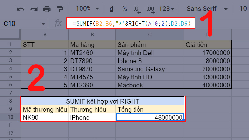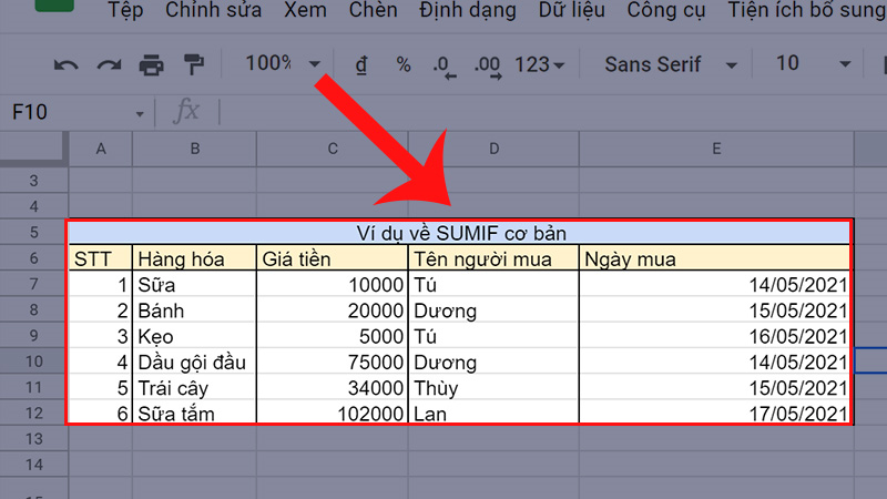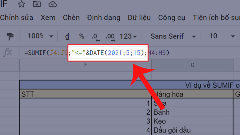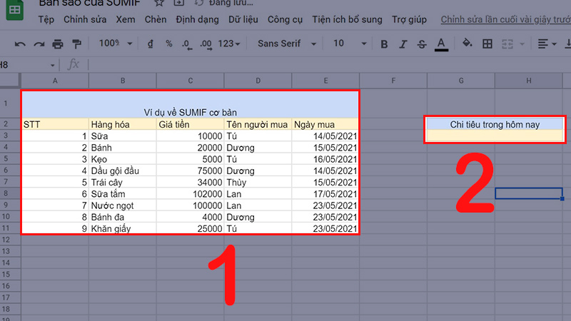 Hướng dẫn cách sử dụng hàm SUMIF trong Google Sheet