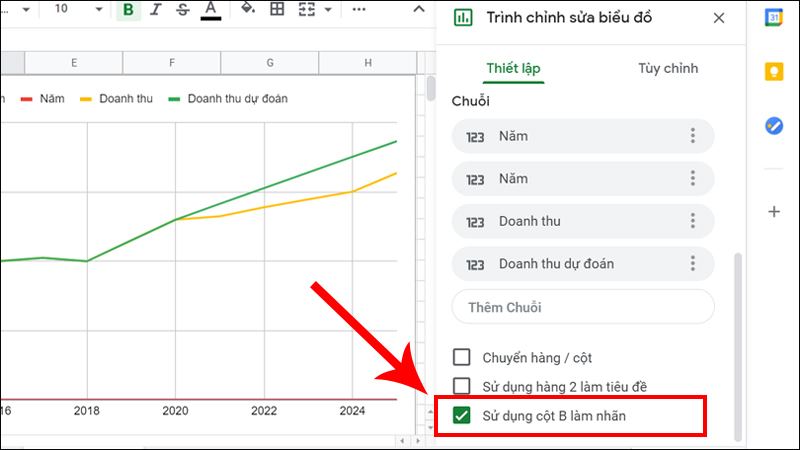 Bước 3: Sau đó tick chọn Sử dụng cột B làm nhãn.