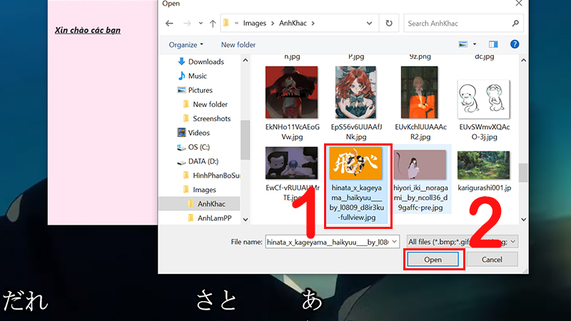Bước 2: Chọn vào ảnh cần chèn > Chọn Open.