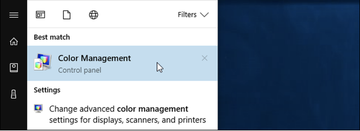 Khi bạn có tệp ICC hoặc ICM, bạn có thể cài đặt nó trong Windows. Trên Windows 7, 8 hoặc 10, hãy mở menu Bắt đầu, tìm kiếm Quản lý màu sắc, và khởi chạy phím tắt Quản lý màu.