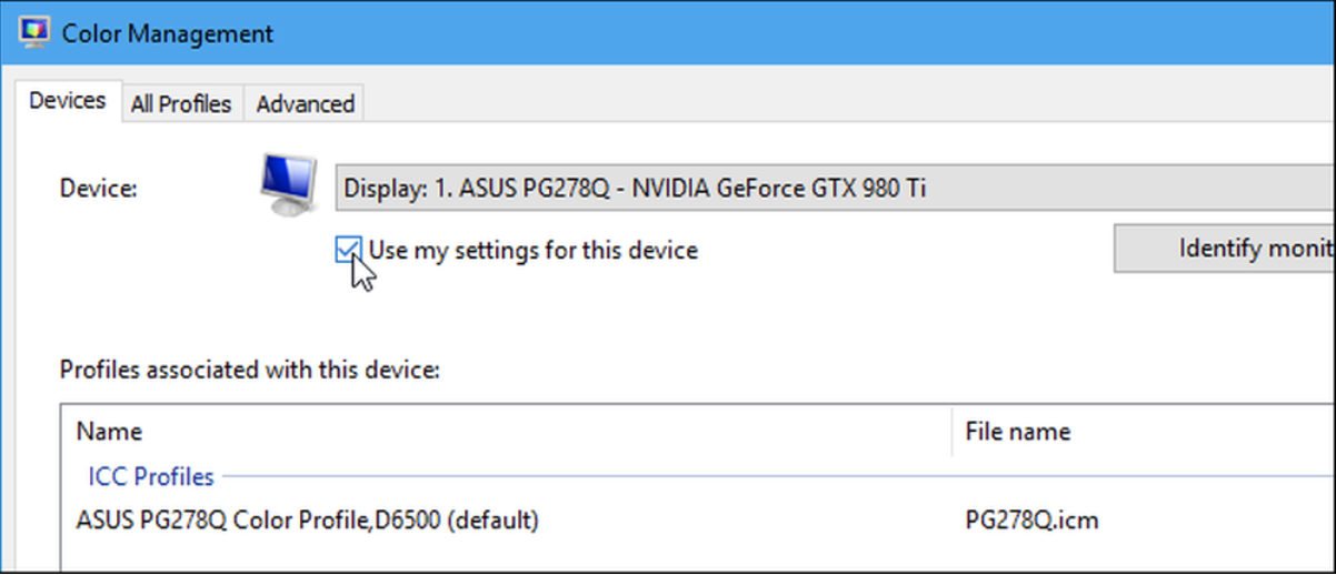 Kiểm tra các mục Sử dụng cài đặt của tôi cho thiết bị này Hộp kiểm bí mật dưới tên thiết bị.