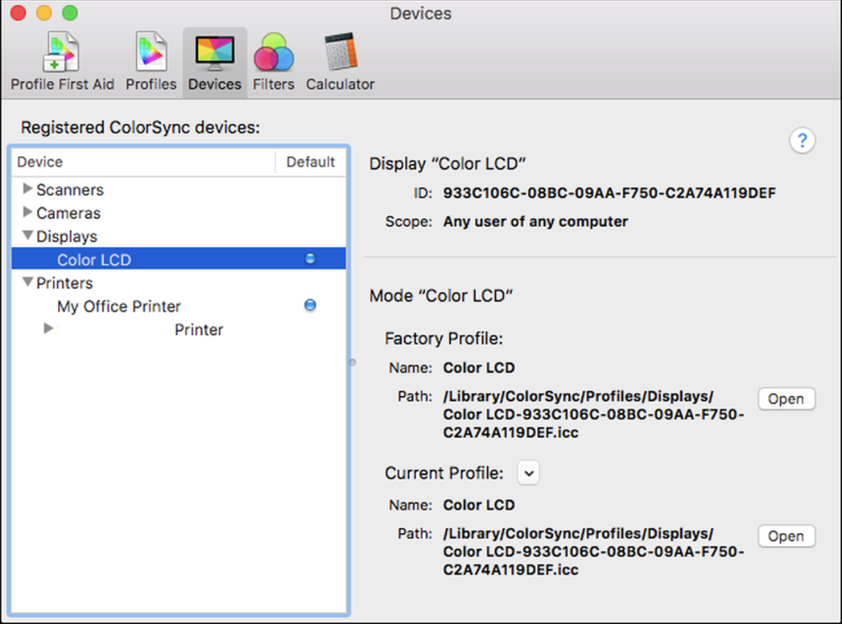 (Nếu bạn muốn cài đặt cấu hình màu cho máy in, hãy chọn máy in thay vì màn hình hiển thị từ hộp Thiết bị của nhà ở đây. Phần còn lại của quy trình là giống hệt nhau.)