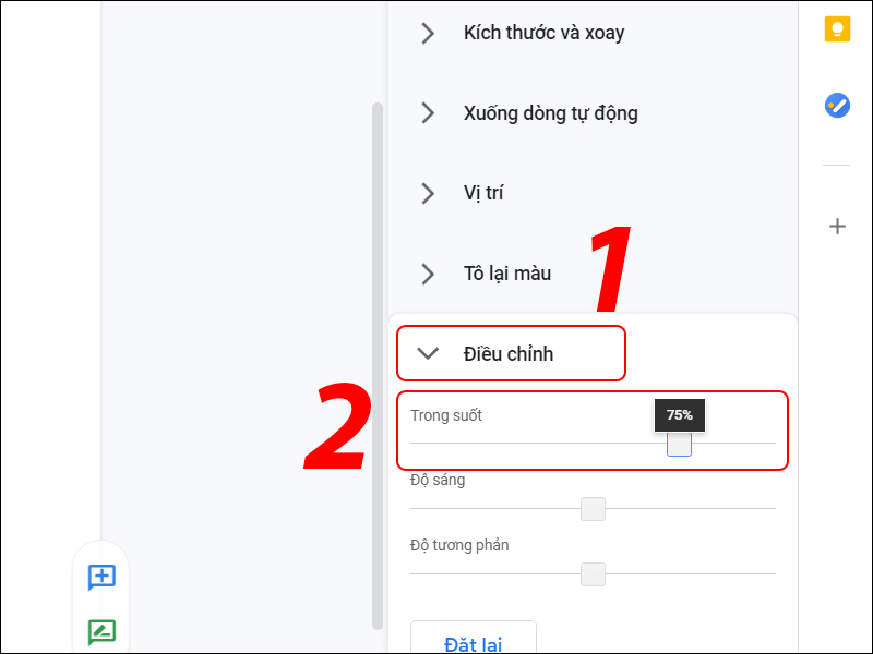 Điều chỉnh độ trong suốt 75%