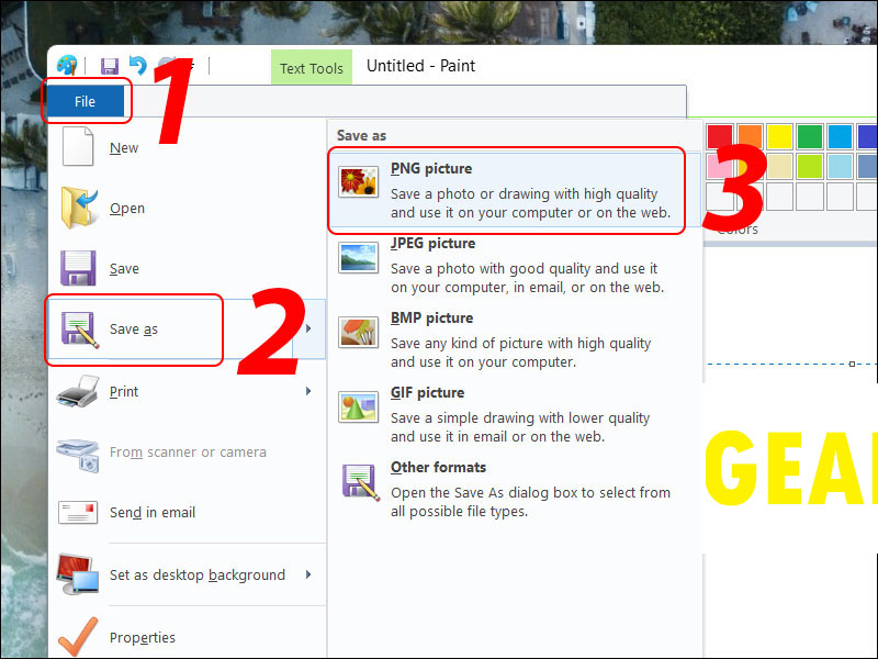 Sau khi hoàn thành thiết kế, hãy làm theo các bước sau để lưu mẫu watermark dưới định dạng PNG: Chọn File > Save As > Chọn PNG Picture.