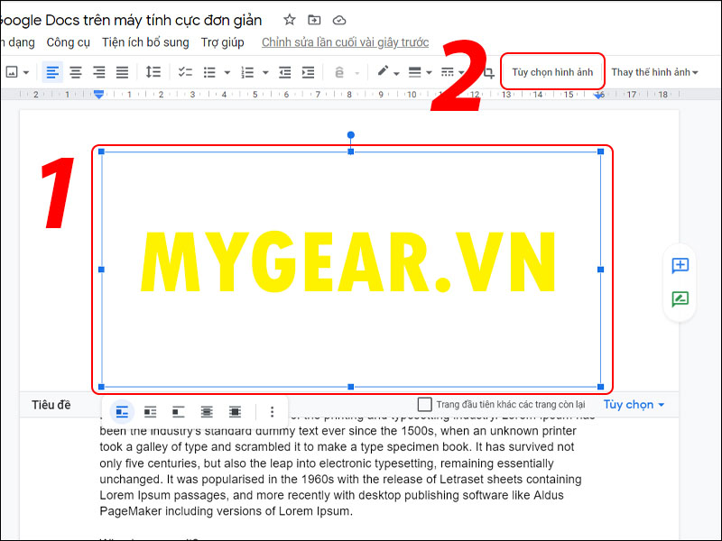 Nhấn vào ảnh > Chọn Tùy chọn hình ảnh > Thiết lập định dạng như sau: