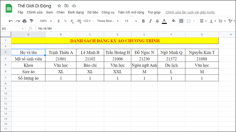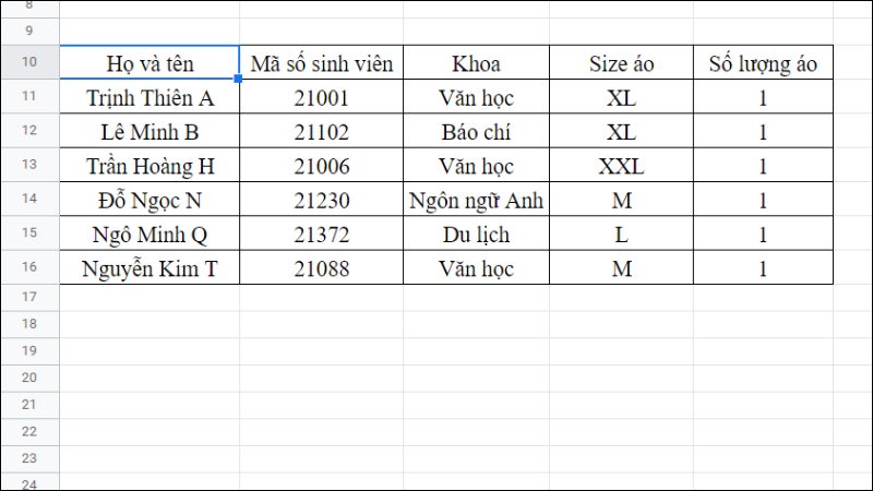 Bước 3: Xem kết quả của bảng đã được chuyển đổi trên Google Sheets.