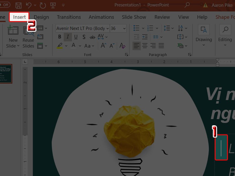 Bước 1: Để sử dụng Hình dạng để khoanh tròn đáp án, hãy chọn tab Chèn.