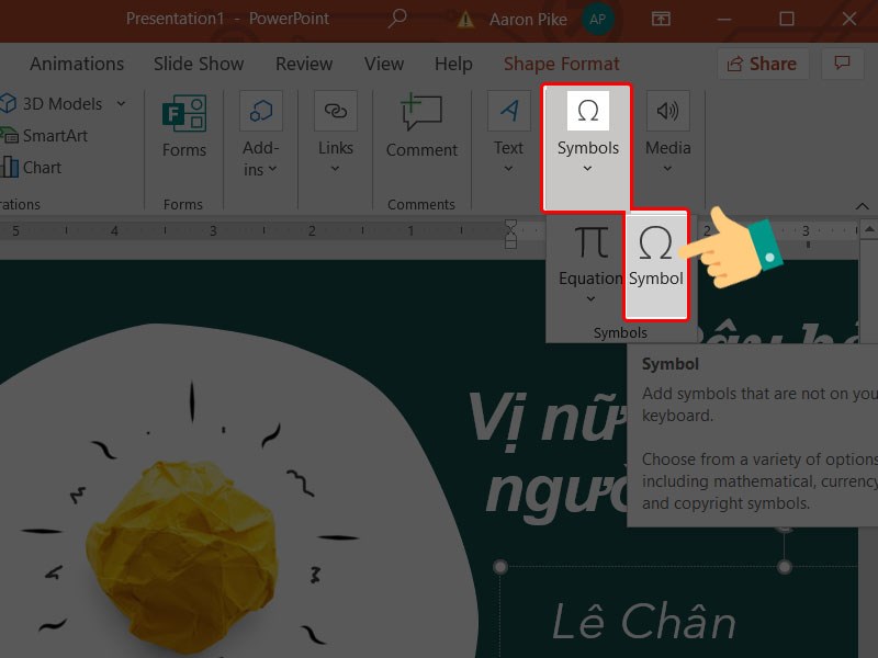 Bước 2: Chọn Ký hiệu và Ký hiệu.