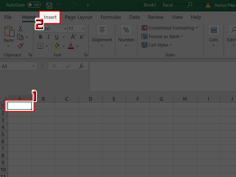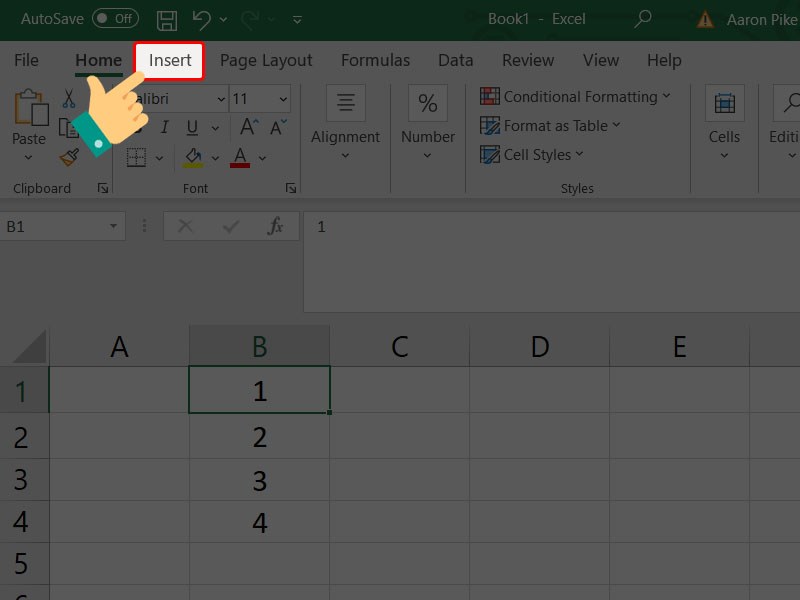 Bước 1: Đầu tiên, bấm vào chèn trên thanh công cụ chính của màn hình.