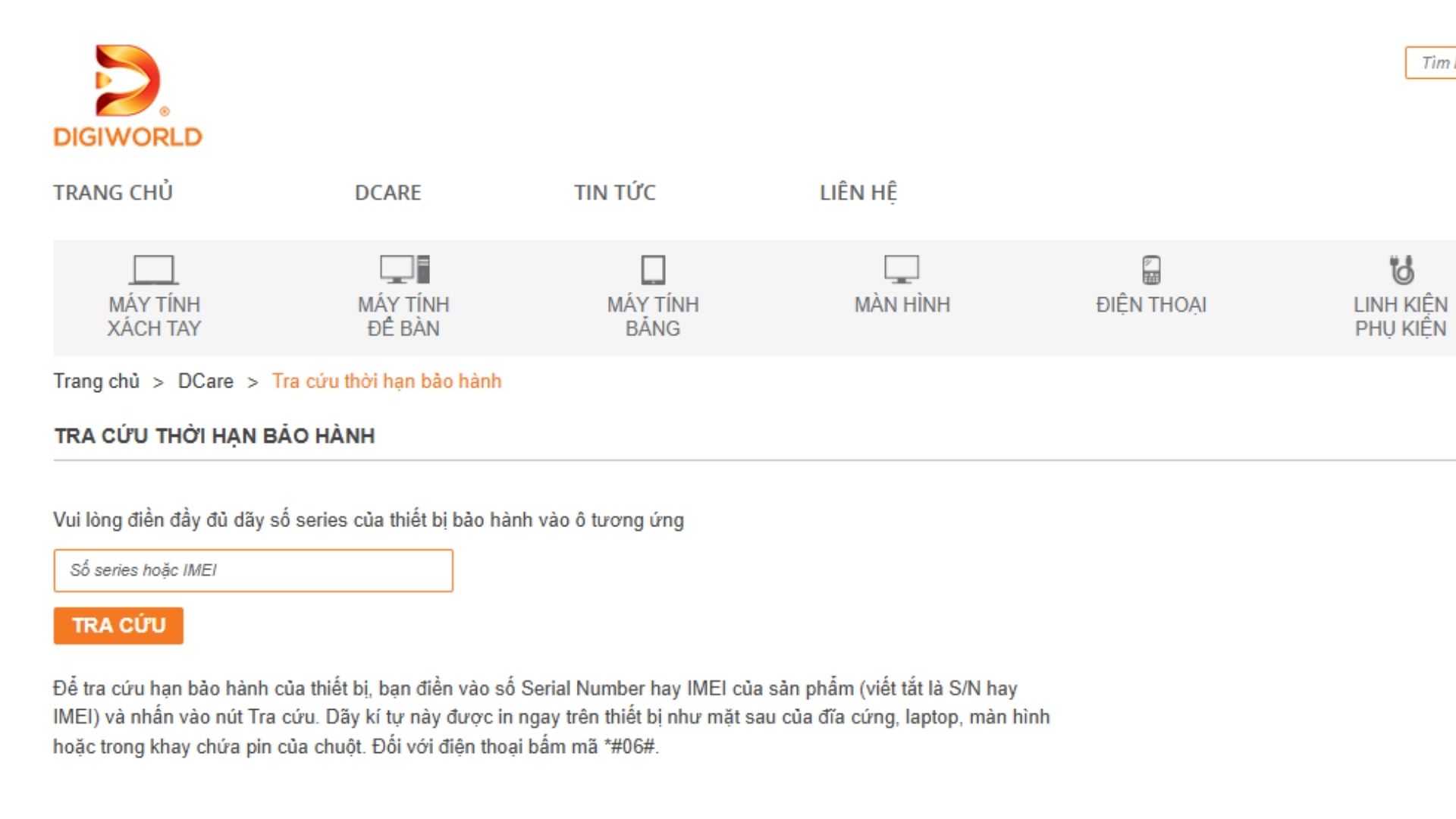 - Truy cập vào đường dẫn: https://ict.digiworld.com.vn/tra-cuu-han-bao-hanh.html