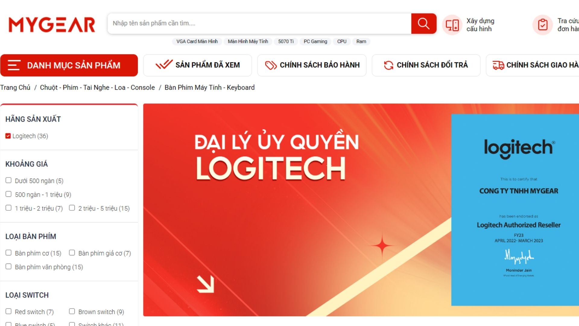 Bạn cũng có thể liên hệ trực tiếp các cửa hàng đại lý chính thức như MYGEAR để hỗ trợ tra cứu thông tin bảo hành bàn phím Logitech: