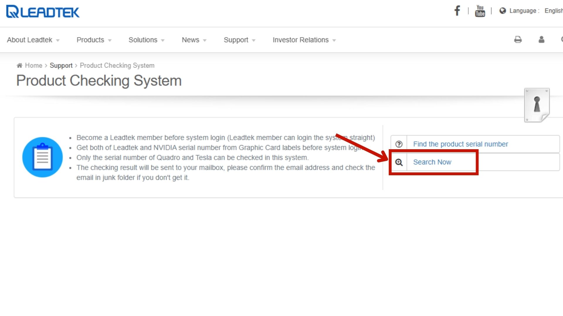 - Truy cập vào đường dẫn: https://www.leadtek.com/eng/support/validate/