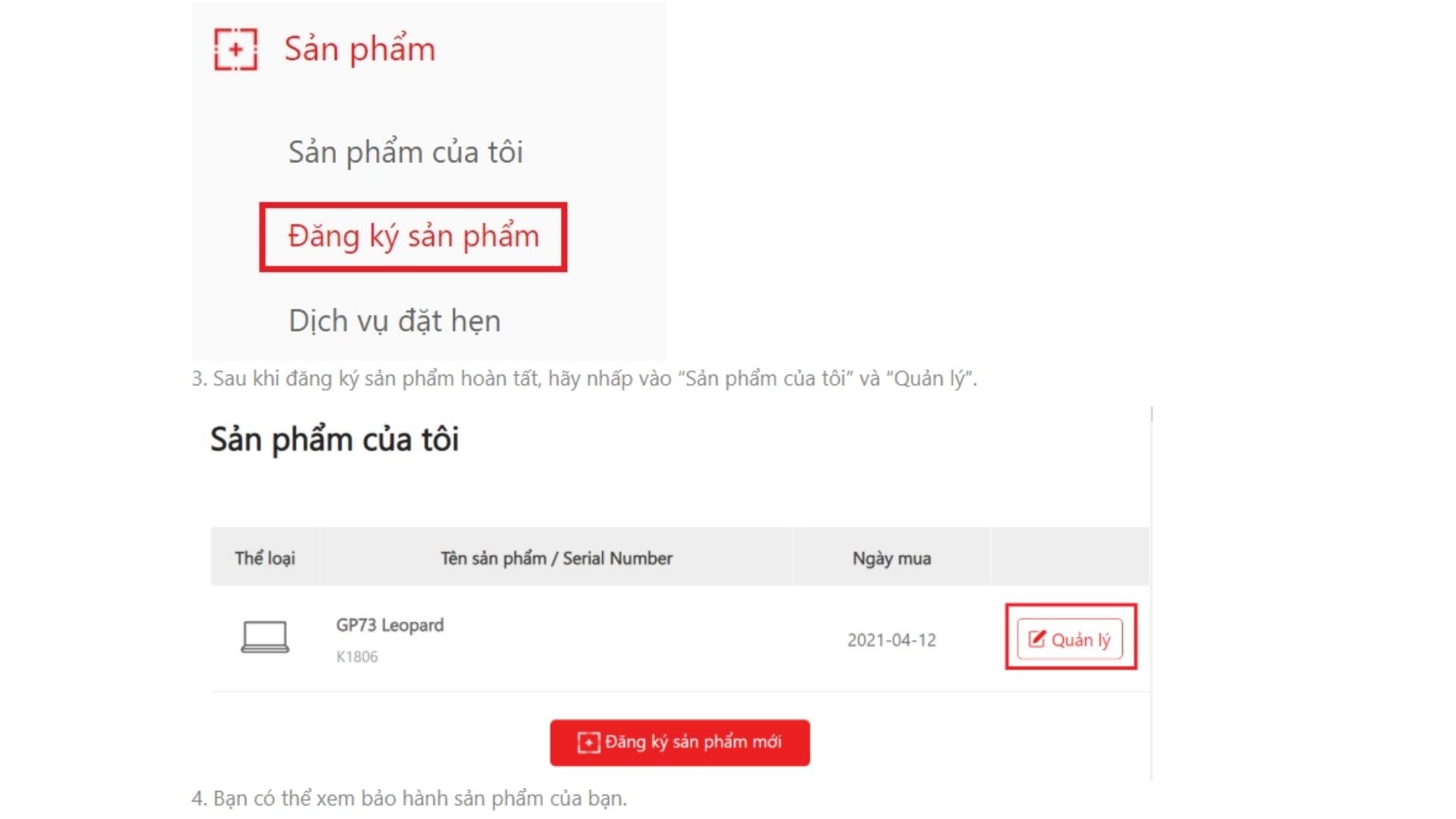 Lưu ý: Nếu bạn chưa đăng ký sản phẩm, hãy tiến hành đăng ký sản phẩm để có thể dễ dàng xem thời hạn bảo hành card màn hình MSI nhé!
