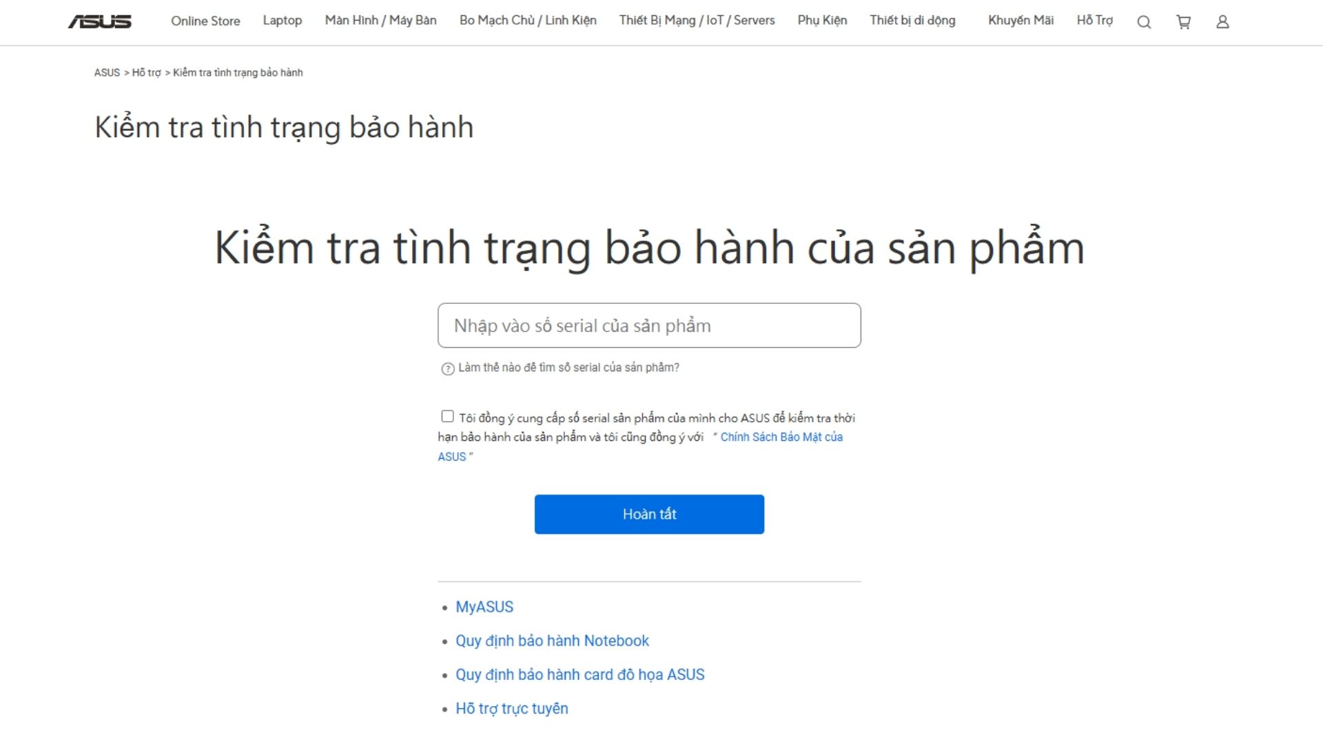 - Truy cập trang web: https://www.asus.com/vn/support/warranty-status-inquiry/