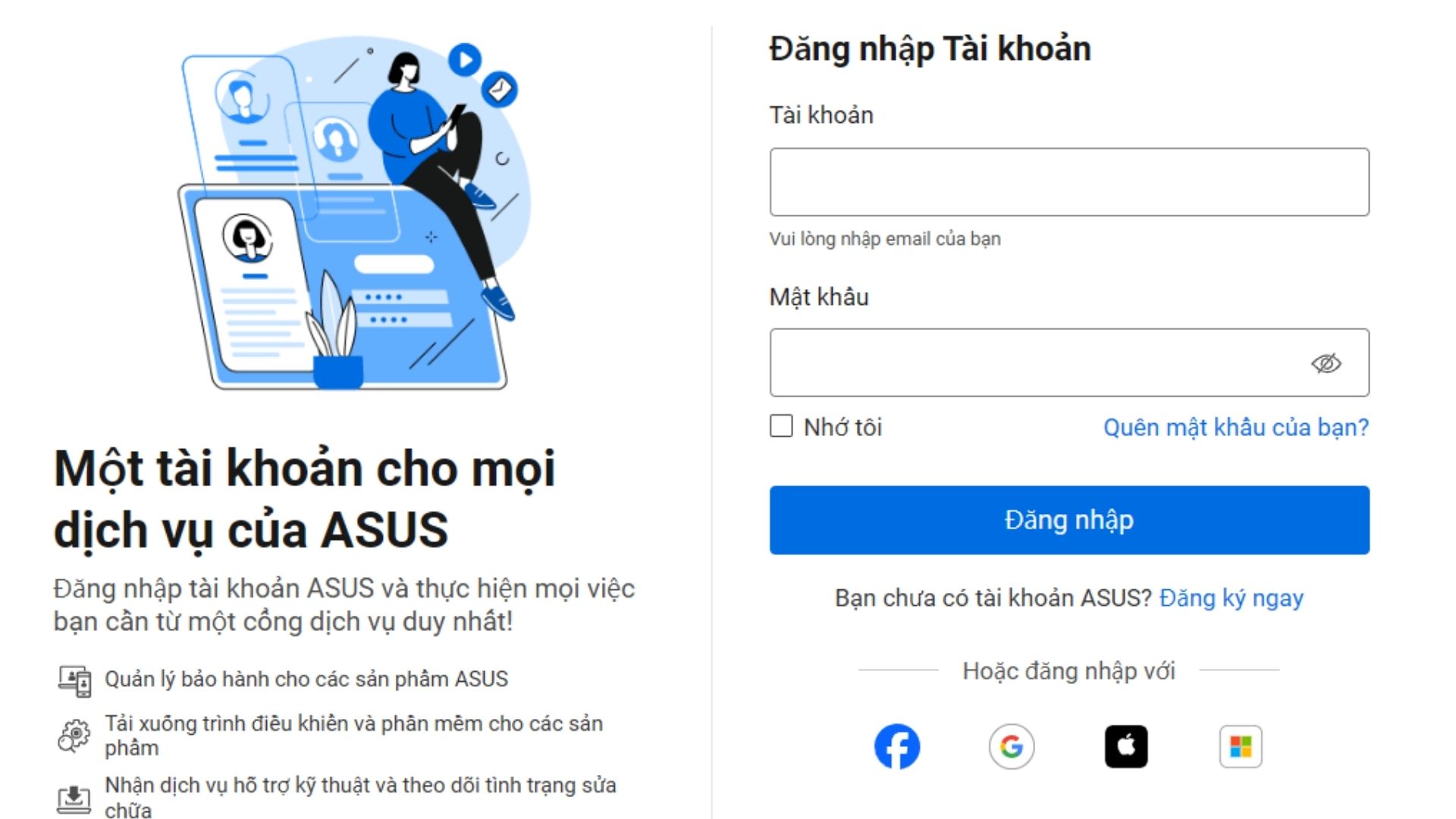 - Truy cập vào đường dẫn sau: https://account.asus.com/vn/loginform.aspx
