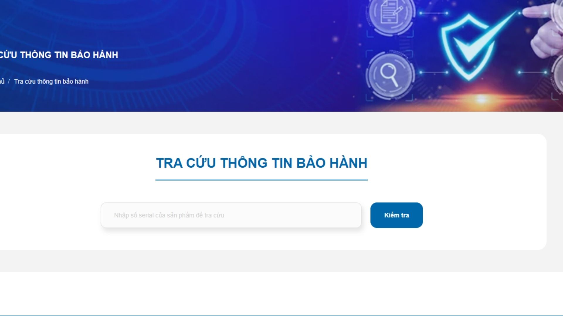 - Truy cập đường dẫn: https://maihoang.com.vn/pages/kiem-tra-serial-bao-hanh