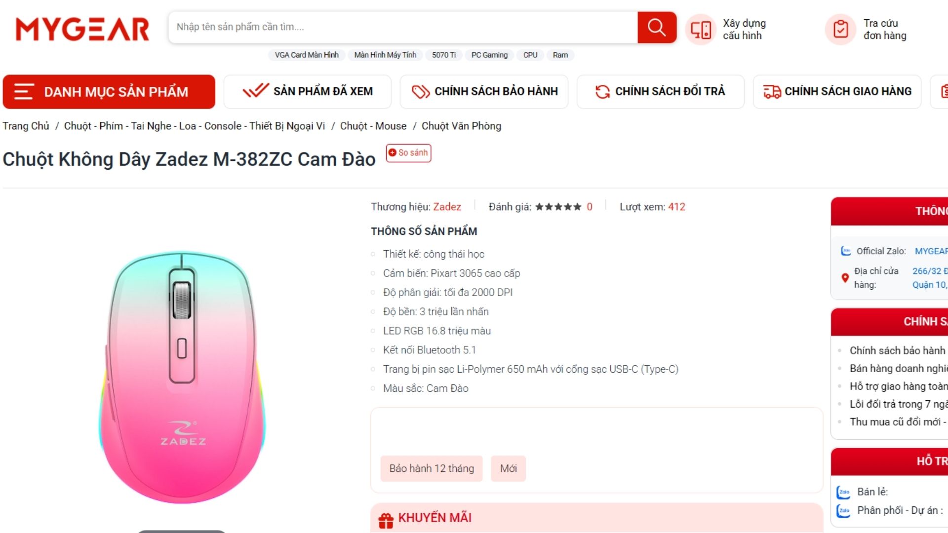 MYGEAR hỗ trợ thông tin bảo hành chuột Zadez