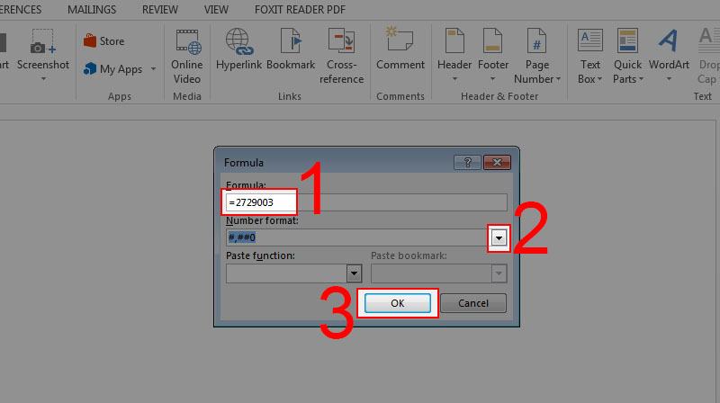 Bước 3: Nhập dãy số của bạn vào thanh Formula, sau đó nhấn nút mũi tên bên cạnh mục Number format và chọn định dạng #,##0, sau đó nhấn OK.