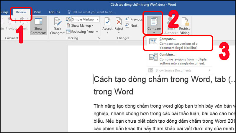 Để so sánh 2 file văn bản Word trên máy tính, bạn có thể thực hiện theo các bước sau:
