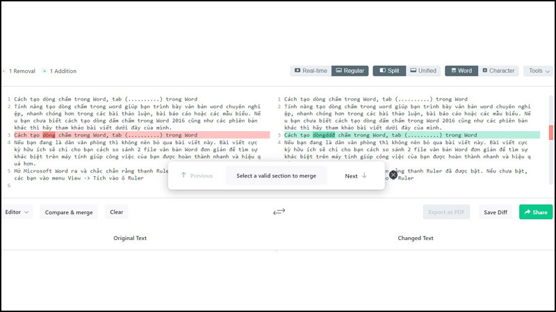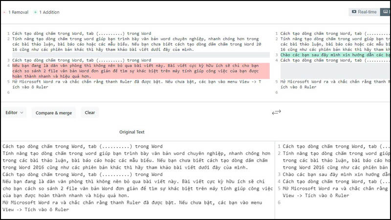 Bạn có thể dễ dàng so sánh văn bản gốc và văn bản đã chỉnh sửa với nhau để nhận ra sự khác biệt.
