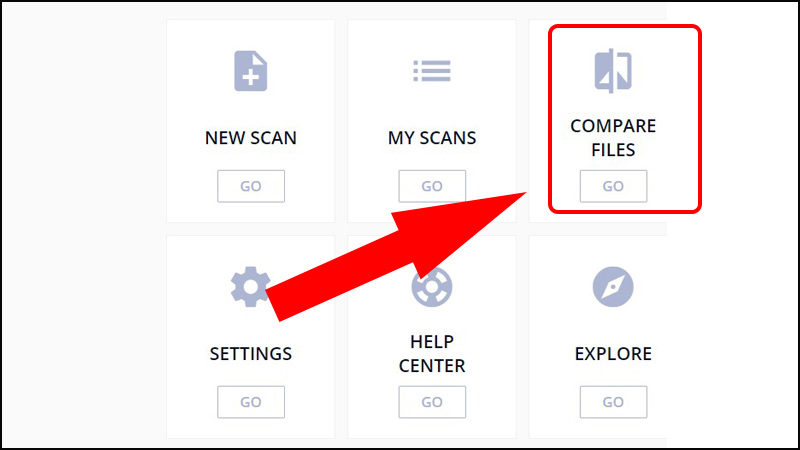 - Bước 2: Nhấn vào COMPARE FILES > Chọn GO.