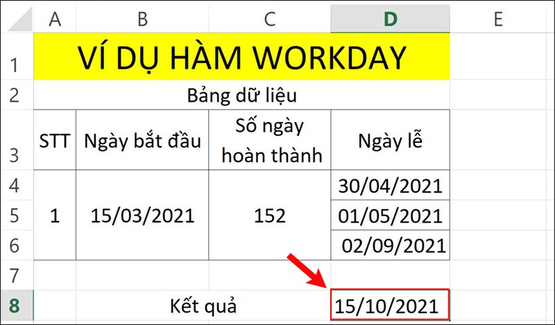 Hướng dẫn sử dụng hàm WORKDAY tính toán thời gian làm việc trong Microsoft Excel