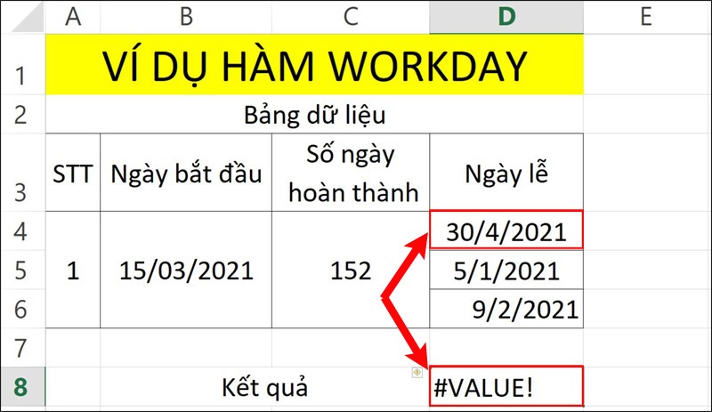 Các lỗi thường gặp khi sử dụng hàm WORKDAY trong Excel