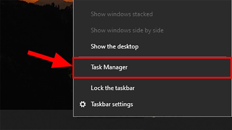 Nhấn chuột phải vào thanh Ribbon > Chọn Task Manager