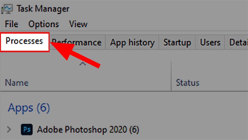 Bước 2: Trong hộp thoại xuất hiện, chọn tab Processes.