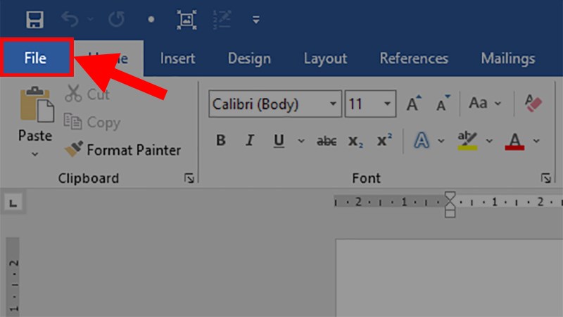 Bước 1: Mở phần mềm Word và nhấp vào thẻ File ở góc trái màn hình.