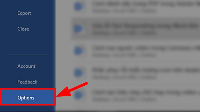 Bước 2: Chọn Options trong danh sách.