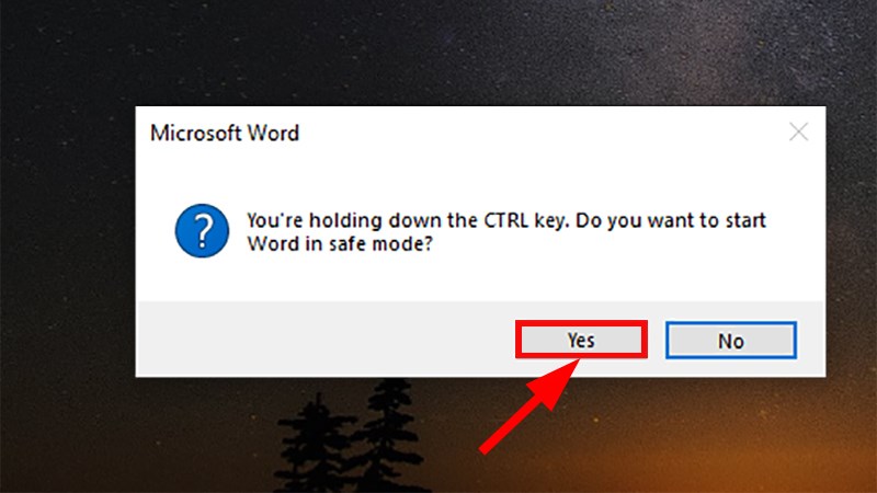 Bước 2: Nhấn và giữ phím Ctrl > Nhấp chuột vào biểu tượng của Microsoft Word > Hộp thoại Safe Mode sẽ xuất hiện > Chọn Yes.