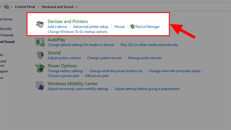 Bước 3: Tiếp theo, chọn Devices and Printers.