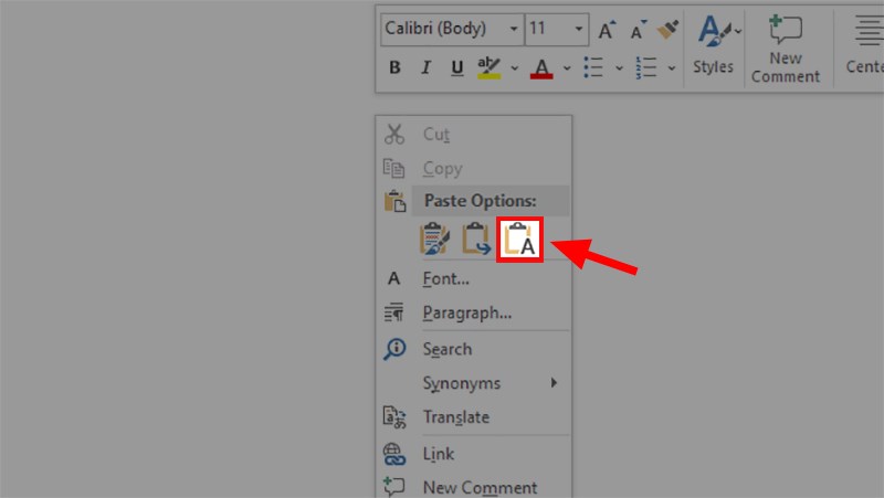 Nhấn chuột phải > Chọn Keep Text Only.