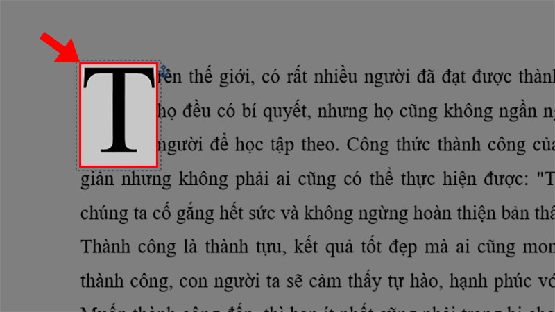 Tô chọn chữ cái muốn tạo Drop Cap