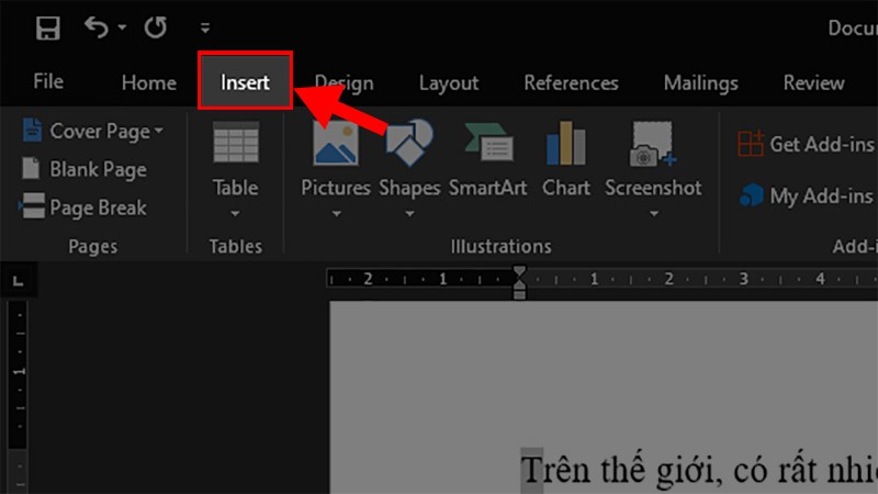 Chọn thẻ Insert