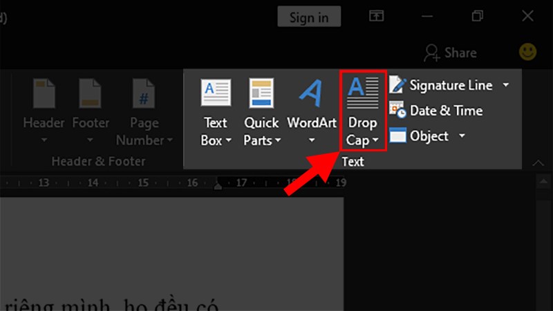 - Tìm mục "Text" và chọn "Drop Cap".