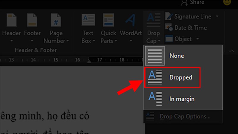 Bước 4: Chọn kiểu Drop Cap, bao gồm: