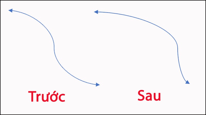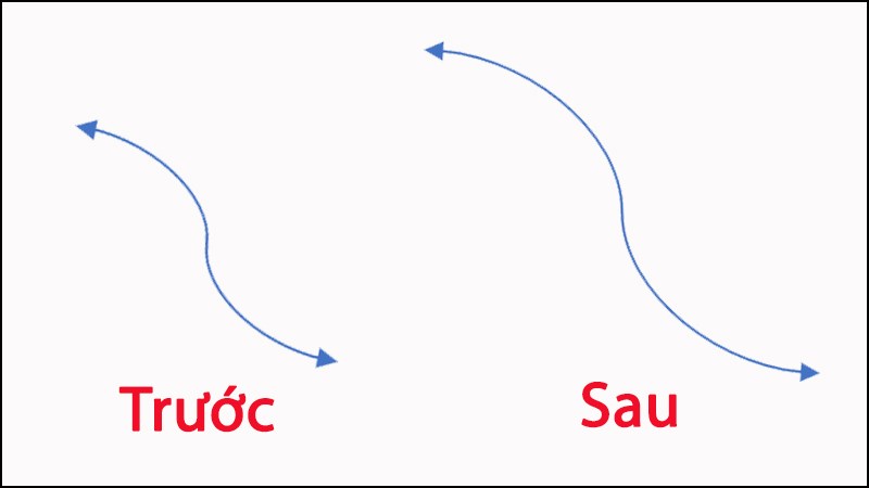 Bước 8: Để thay đổi độ cong, chọn mũi tên và giữ chuột trái tại nút tròn màu vàng ở đầu mũi tên, sau đó kéo để điều chỉnh độ cong theo ý muốn.