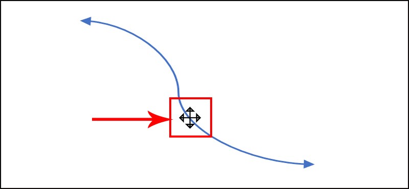 Để thay đổi độ cong của mũi tên, nhấp vào mũi tên, nhấp giữ chuột trái tại nút tròn màu vàng và kéo để điều chỉnh độ cong theo mong muốn.
