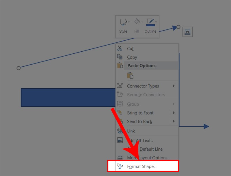 Bước 5: Nhấp chuột phải vào mũi tên và chọn Format Shape (Định dạng Hình dạng).