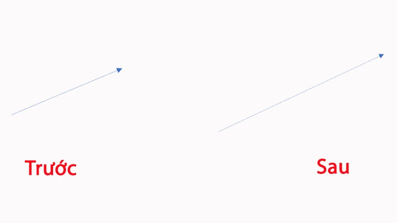 Để thay đổi chiều dài của mũi tên, nhấp vào mũi tên, nhấp chuột trái và chọn vào nút tròn trắng ở hai đầu mũi tên, sau đó kéo để điều chỉnh độ dài mũi tên theo ý muốn.