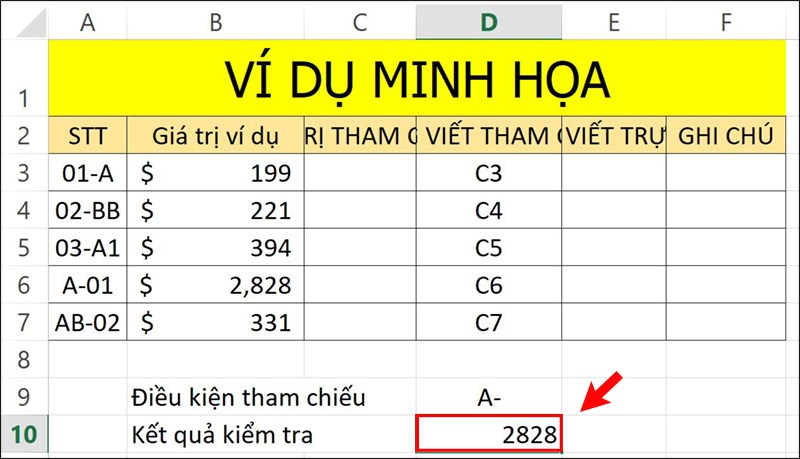 Bảng ví dụ minh họa.