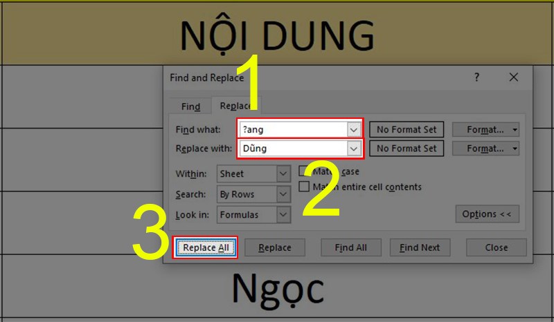 Tìm và thay thế các ký tự đại diện trong Excel