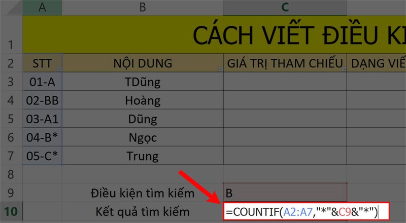 Công thức ký tự đại diện COUNTIF trong Excel