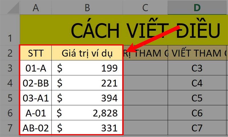 Để minh họa, hãy giả sử bạn có một bảng dữ liệu như được thể hiện trong hình vẽ.