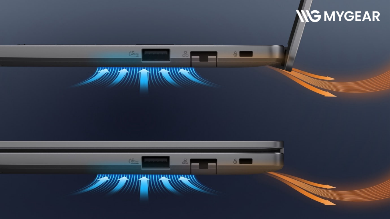 ASUS trang bị cho laptop văn phòng ASUS hệ thống quạt tản nhiệt thông minh, duy trì hiệu năng ổn định trong thời gian dài mà vẫn đảm bảo độ ồn thấp. Người dùng có thể làm việc liên tục nhiều giờ mà không lo máy nóng hay giảm hiệu suất.