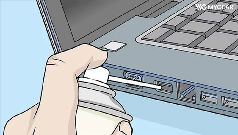 - Vệ sinh cổng USB bằng bông khô hoặc tăm bông, kết hợp với bình khí nén để loại bỏ bụi bẩn bên trong.