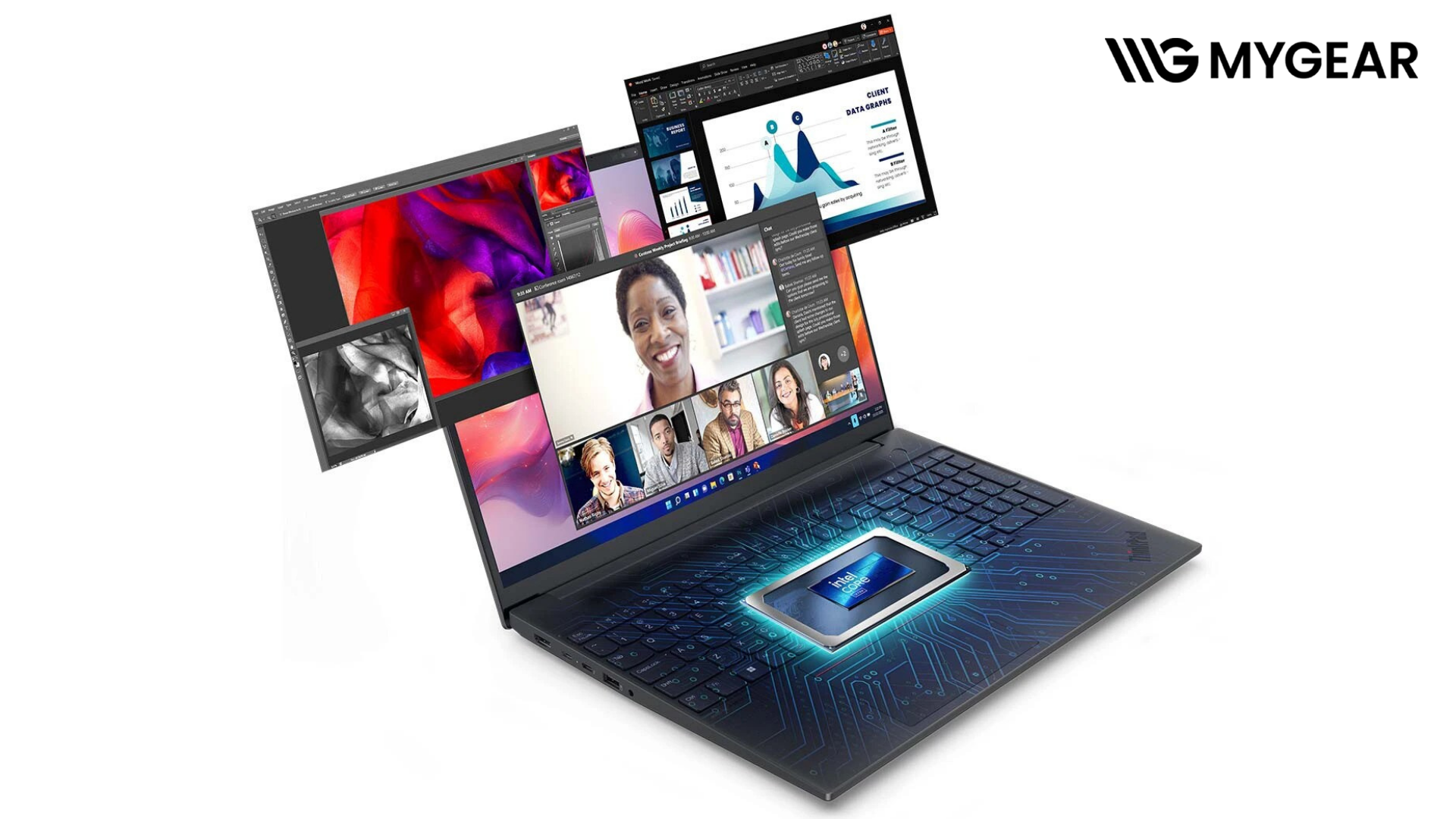 Màn hình lớn và bàn phím ThinkPad đặc trưng giúp laptop doanh nhân Lenovo ThinkPad E16 tạo cảm giác làm việc thoải mái trong thời gian dài. Khi mua tại MYGEAR, laptop văn phòng Lenovo ThinkPad E16 Gen 3 chính hãng luôn sẵn hàng, hỗ trợ nâng cấp RAM SSD, cài đặt hệ điều hành và build hệ thống đồng bộ cùng các phụ kiện như màn hình văn phòng, chuột, bàn phím và SSD chính hãng từ Lenovo.